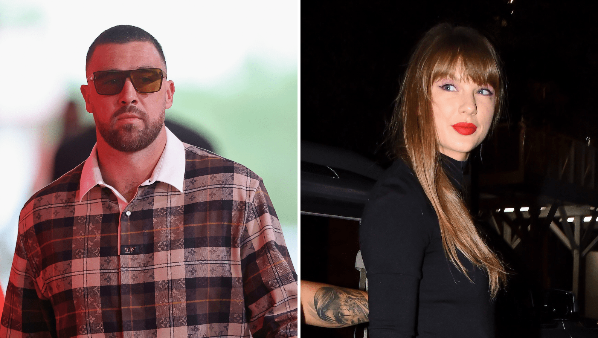 Travis Kelce is making sure to think of fiancée Taylor Swift ahead of his Sunday Night Football game. Kelce, 36, arrived at the Sunday, October 12, ga...