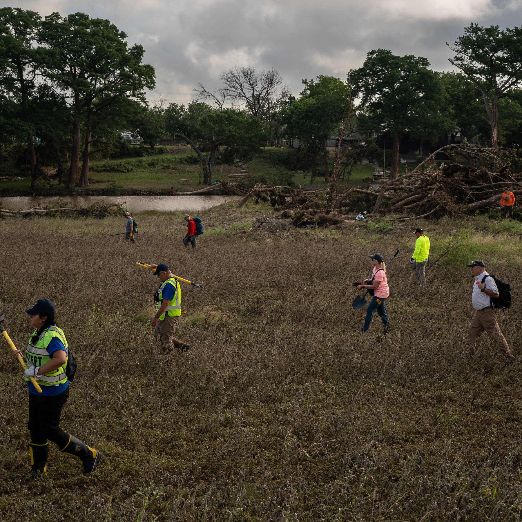 Volunteers and professionals from around the country and Mexico are still searching the challenging terrain for victims of the Texas flood.