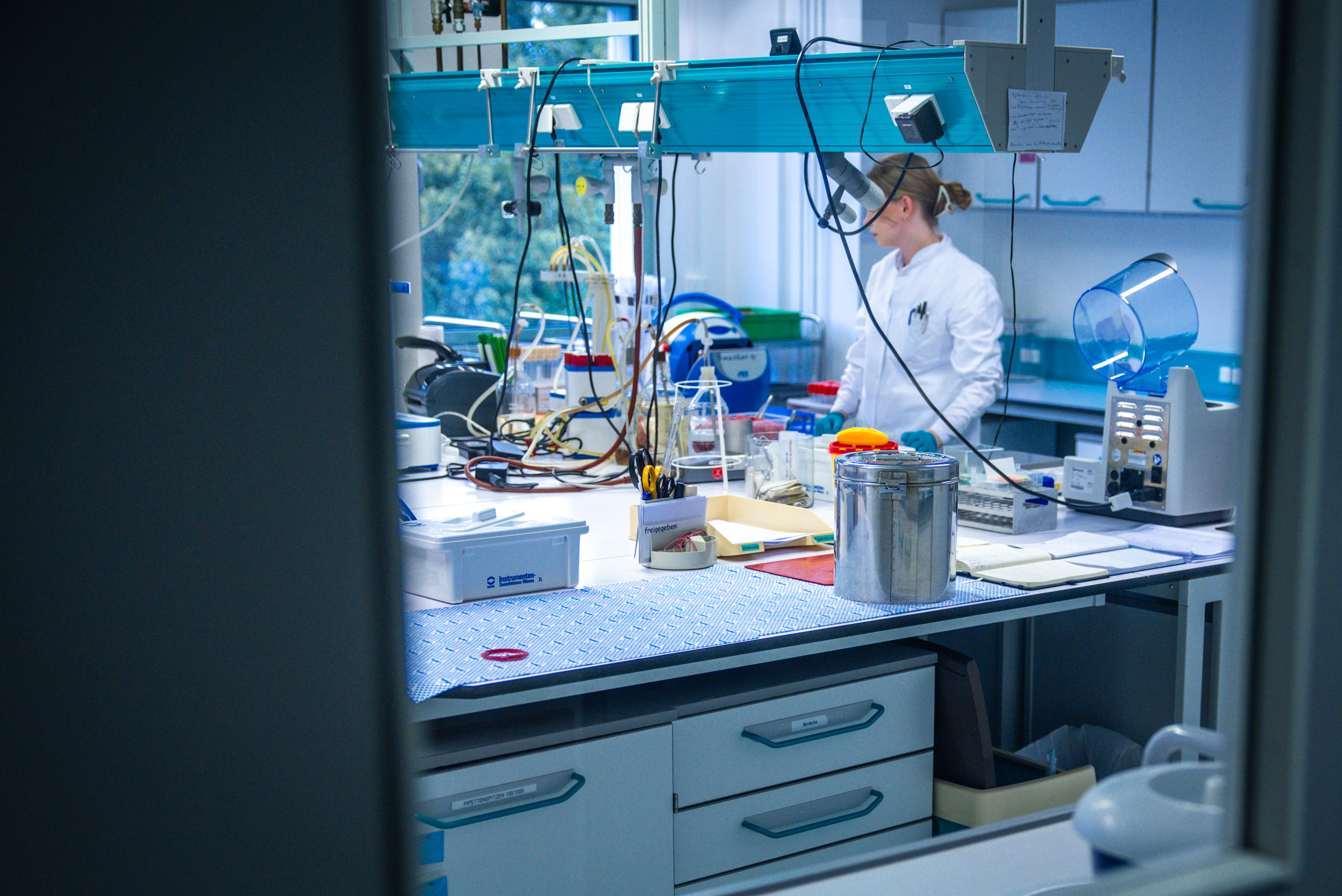 An employee works with a sample in the laboratory of the State Office for Agriculture, Food Safety and Fisheries in Rostock, Germany. | Jens Bü...