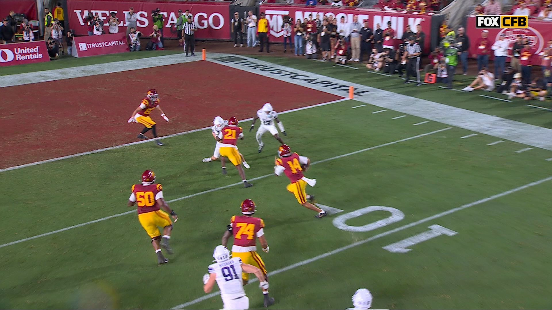 Ja'kobi Lane's INSANE one-handed grab extended the USC Trojans' lead over the Northwestern Wildcats