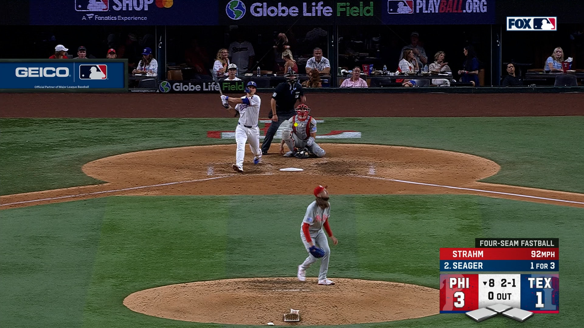 Corey Seager hit a solo home run to cut the Texas Rangers' deficit against the Philadelphia Phillies.