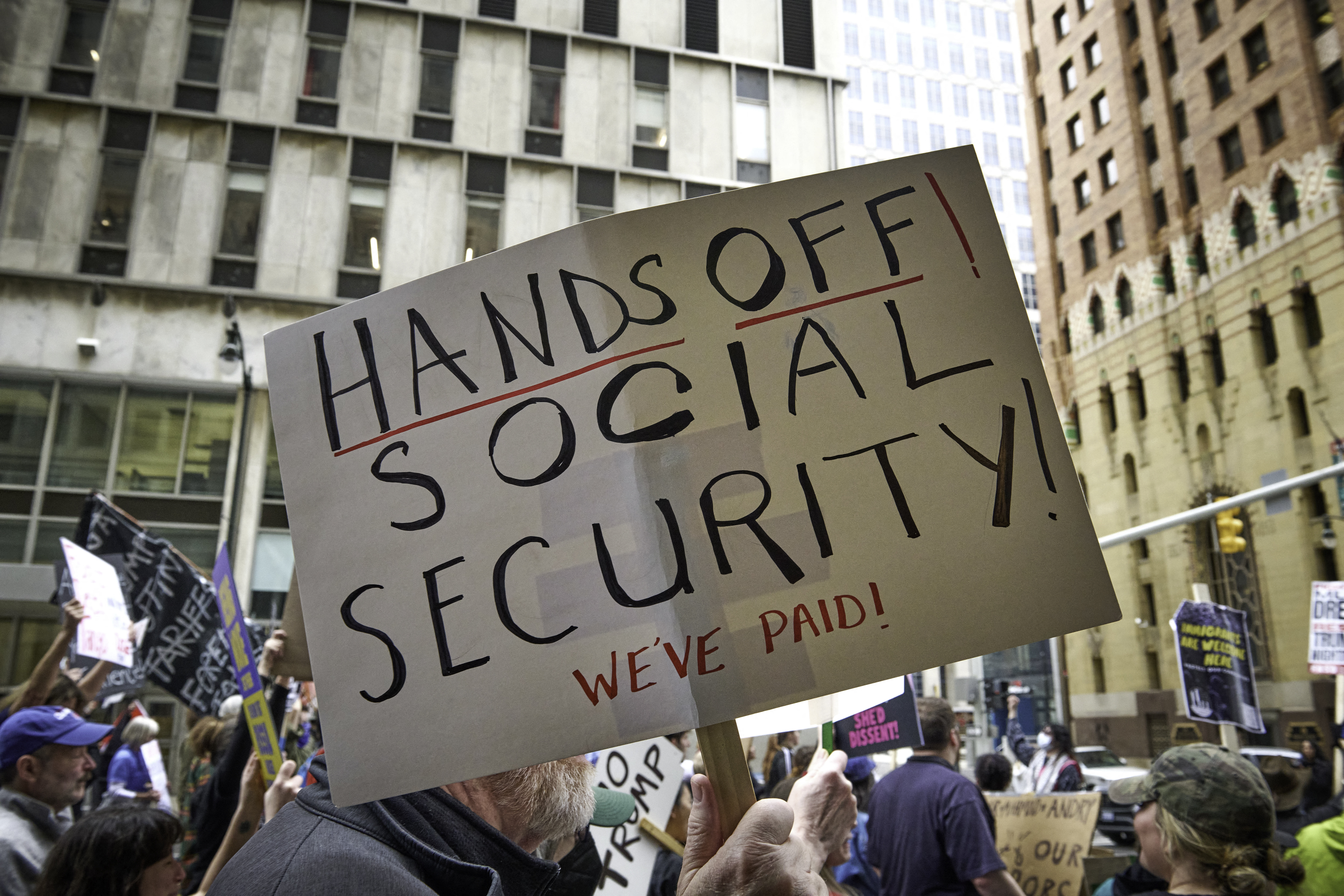 A protester holds up a pro-Social Security sign in Detroit on April 19, 2025. | Dominic Gwinn/Middle East Image/AFP via Getty Images The other...